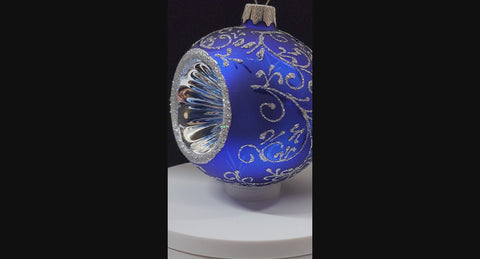 Each of our blown glass pieces is hand painted with skill, precision and love. You will notice a blue finish accented with silver trim. A beautiful baby blue and silver colored indentation makes it look majestic. We recommend using an ornament hook for durability.